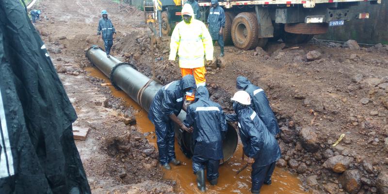 Pose de conduites de refoulement de la station compacte de Kabalankoro